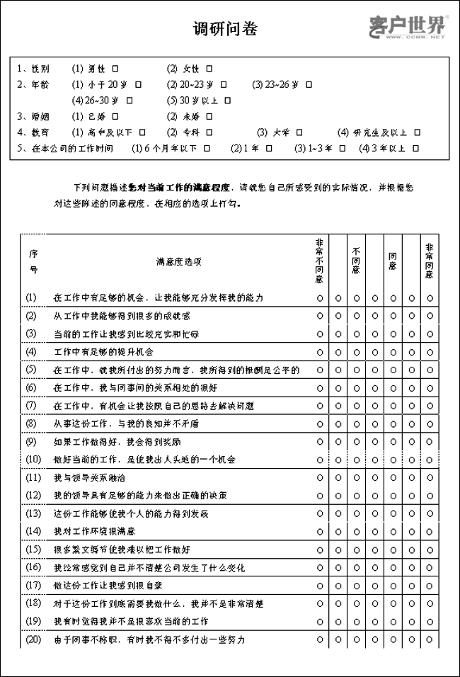 對(duì)于呼叫中心的實(shí)際情況來(lái)說(shuō),采用“明尼蘇達(dá)工作滿意度量表”(Minnesota Satisfaction Questionnaire,簡(jiǎn)稱MSQ)效果最好,因?yàn)椋?