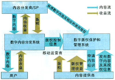 版權(quán)技術(shù)就是數(shù)字內(nèi)容版權(quán)管理(DRM)技術(shù),即給數(shù)字內(nèi)容一定的控制和標識,避免其被非法使用、拷貝和盜版,為基于內(nèi)容的各種增值業(yè)務(wù)發(fā)展提供安全保證。目前,數(shù)字版權(quán)管理技術(shù)正由第一代向第二代發(fā)展。DRM1.0技術(shù)主要用于內(nèi)容的保護,DRM2.0主要加強通信保護和密鑰保護,這正是移動網(wǎng)需要的。