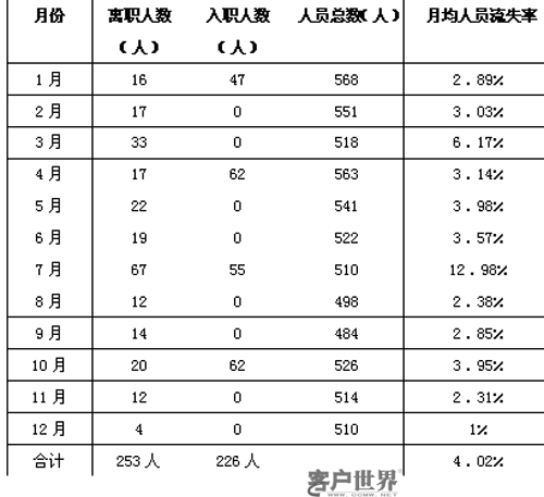 1.呼叫中心一般計算人員流失的方法及計算公式