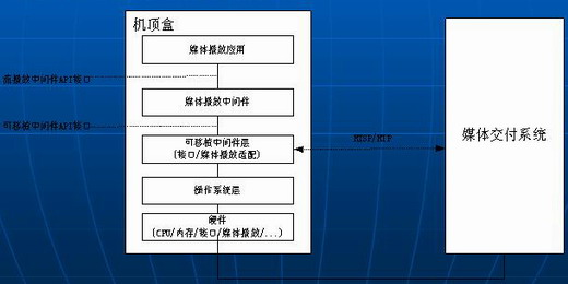中間系統(tǒng)層架構(gòu)是一個基于軟件模塊結(jié)構(gòu)的抽象層次定義;它定義了中間件模塊在機頂盒中是怎樣被組織的以及在整個機頂盒軟件體系結(jié)構(gòu)中處于什么位置;