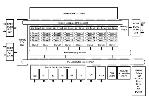 RLDRAM II控制器、片上封裝包處理、QoS、TCP、壓縮/解壓縮、加密和模式匹配加速器硬件等。