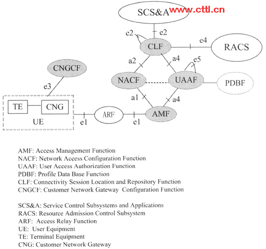 TISPAN有多個工作小組從事NASS的研究,分別研究NASS的內(nèi)部架構(gòu)和外部接口協(xié)議(如e1,e2,e4,e5),NGN Release