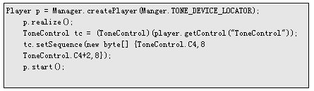 如果要播放序列音,則必須使用ToneControl。使用一個特別的定位器來創(chuàng)建一個 Player對象,獲得ToneControl,設(shè)置其命令序列,然后啟動播放器,如:
