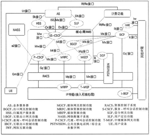 圖1是IMS的整體網(wǎng)絡(luò)架構(gòu)示意圖,其主要的邏輯實(shí)體有: