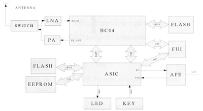 其中,BC04支持最大4個(gè)活動(dòng)連接(包括耳機(jī)),同時(shí)支持兩路SCO語(yǔ)音,所以語(yǔ)音通過(guò)PCM和ASIC PCM相接可以有多路被送到模擬端,從而實(shí)現(xiàn)3方通話。ASIC部分實(shí)現(xiàn)PCM語(yǔ)音數(shù)據(jù)與模擬語(yǔ)音信號(hào)的相互轉(zhuǎn)換,通過(guò)發(fā)送和接收PSTN信令,負(fù)責(zé)對(duì)人機(jī)界面的控制。它通過(guò)GPIO(General