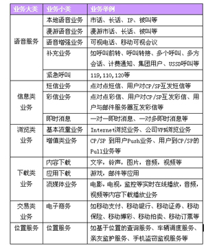 3.支持的業(yè)務(wù)類型(見表1)