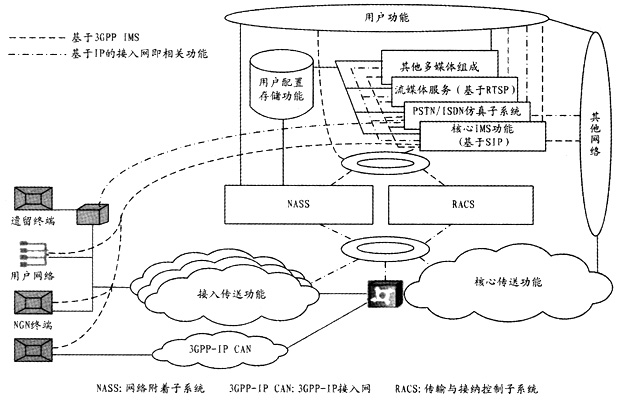 在IMS支持的固網(wǎng)接入方式下,位于控制平面的RACS和NASS兩個(gè)子系統(tǒng)有效地實(shí)現(xiàn)了業(yè)務(wù)控制與傳送功能相分離,向下感知傳送網(wǎng)絡(luò)的資源使用情況,為上層應(yīng)用提供接口。通過(guò)資源接納控制,確保正確合理地使用傳送網(wǎng)絡(luò)資源,從而保證業(yè)務(wù)的服務(wù)質(zhì)量(QoS),并防止帶寬和業(yè)務(wù)被盜用的現(xiàn)象發(fā)生。