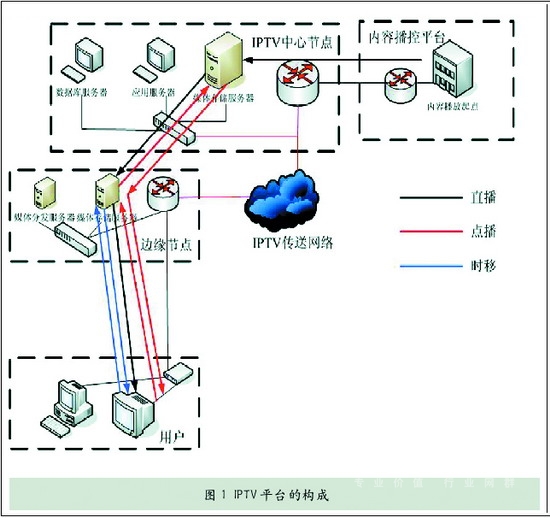 圖1中采用的是兩級架構(gòu),實際部署中,IPTV平臺可以采用多級架構(gòu),以減輕IPTV中心平臺的壓力,否則所有的時移電視、點播節(jié)目全部存放在中心平臺會嚴(yán)重影響用戶的收看質(zhì)量。