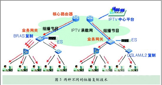 BRAS和DSLM都可以很好地解決組播問題。但由于BRAS在DSLAM的上層,因此如果采用BRAS組播方式,其特點是投資相對較少、控制較為方便,但是下層從BRAS到DSLM,用戶終端的帶寬占用較大。如果采用DSLAM組播方式,其特點是投資相對較多,控制較復(fù)雜,但是下層從BRAS到DSLM,用戶終端的帶寬占用較小。因此要根據(jù)各地具體情況來決定采用在何處進行組播復(fù)制。但無論如何,組播復(fù)制要確保不能影響用戶的收看質(zhì)量。