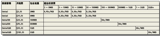 表1Vodafone澳大利亞數(shù)據(jù)流量套餐