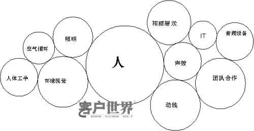 我們“以人為本”的出發(fā)點(diǎn),相信能夠得到您的認(rèn)同。但是空間中所包含的元素還是非常的復(fù)雜。即使在我們內(nèi)部編寫的《呼叫中心營建白皮書》中,就呼叫中心空間設(shè)計(jì)的要點(diǎn)一項(xiàng),就有15個(gè)方面之多,相信以后隨著經(jīng)驗(yàn)和需求的變化,還會(huì)有所增加。