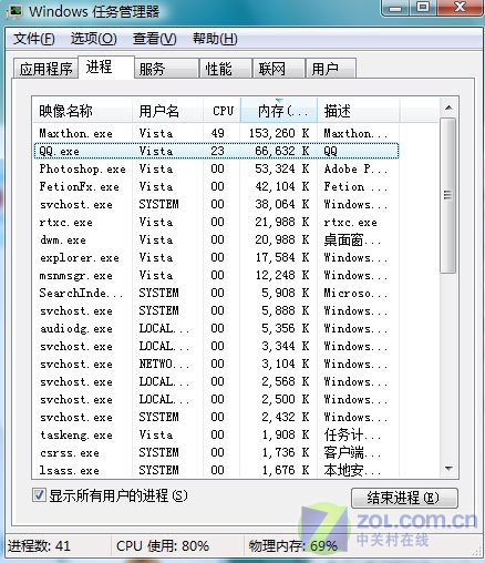 圖12飛信/QQ/MSN各自所占的系統(tǒng)資源