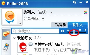 介紹完上面一些鮮為人知的小技巧后,我們總算可以登錄飛信 2008了!看看我添加到好友吧。如圖4所示: