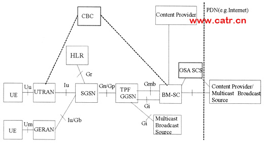 圖2 MBMS網(wǎng)絡(luò)結(jié)構(gòu)