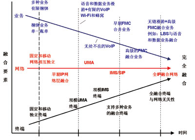 從實現過程來看,運營商一般都以業(yè)務捆綁為切入點,然后逐步實現業(yè)務融合和終端融合。