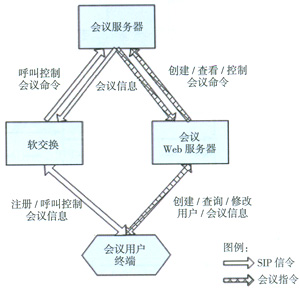(2)會(huì)議應(yīng)用服務(wù)器:向用戶提供統(tǒng)一的Web會(huì)議界面,使得用戶簡單快捷的使用會(huì)議業(yè)務(wù);提供用戶的身份認(rèn)證以及相關(guān)信息的管理功能;提供會(huì)議記錄以及詳細(xì)信息的查詢功能;提供輔助的數(shù)據(jù)協(xié)同功能,如文件共享;另外,應(yīng)用服務(wù)器還可以通過對標(biāo)準(zhǔn)的接口調(diào)用,豐富業(yè)務(wù)的功能。如NGN的業(yè)務(wù)平臺如果具有通信簿能力服務(wù)器,會(huì)議服務(wù)器可以通過標(biāo)準(zhǔn)的接口調(diào)用該能力,那么用戶可以在預(yù)約會(huì)議時(shí)方便的添加與會(huì)者。