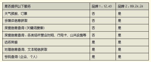 而另一家歐洲領(lǐng)先的電話信息查詢運(yùn)營(yíng)商意大利SEAT Pagine Gialle則細(xì)分客戶需求,推出從基本號(hào)碼服務(wù)到地理信息搜索、預(yù)定等一系列服務(wù),并通過中低端(12.40)和中高端(89.24.24)兩個(gè)品牌進(jìn)行差異化運(yùn)營(yíng)。從下表中可以看到兩個(gè)品牌提供的服務(wù)。其中,中高端品牌89.24.24除了簡(jiǎn)單的號(hào)碼查詢、位置查詢和話務(wù)轉(zhuǎn)接以外,還提供一系列深度信息查詢等服務(wù),并且已經(jīng)占到總話務(wù)量的63%。
