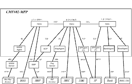 Provider)的交易請求,根據(jù)用戶的賬戶設置情況,與本地數(shù)據(jù)庫(或銀行、或BOSS系統(tǒng))交互,完成對用戶支付賬戶的扣費操作;業(yè)務受理部分MPSU:完成業(yè)務受理的功能,處理管理員、營業(yè)廳操作員、或用戶的業(yè)務管理請求,進行相應查詢、配置或計算,并返回結(jié)果;代理部分Agent,例如:WWWAgent,BankAgent等負責與各個外部實體的通信;另外,系統(tǒng)還應有輔助模塊用來完成系統(tǒng)各進程的守護、監(jiān)視、控制、以及系統(tǒng)性能數(shù)據(jù)的采集功能。