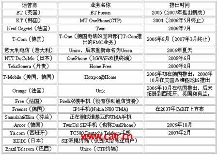 2008年,基于融合性終端的FMC業(yè)務(wù)備受矚目,BT、法國電信、德國電信、NTT DoCoMo等運營商利用UMA技術(shù),提供基于WiFi/GSM或者WiFi/WCDMA雙模終端的FMC業(yè)務(wù),市場反映良好,被運營商作為未來重點發(fā)展的業(yè)務(wù),預(yù)計2010年全球FMC用戶將達到3