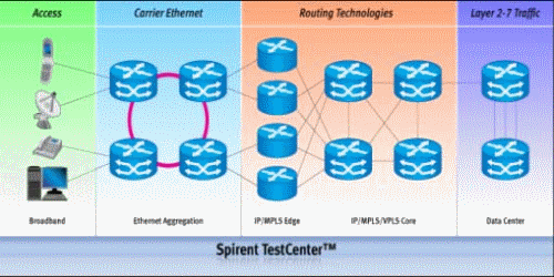 隨著語音、數(shù)據(jù)、視頻的融合,以及Everything over IP的發(fā)展,日趨復(fù)雜的業(yè)務(wù)流量及電信級(jí)別的營運(yùn)要求給承載設(shè)備帶來更加嚴(yán)格的挑戰(zhàn)。豐富的功能應(yīng)用、高密度/高帶寬端口的支持、高性能轉(zhuǎn)發(fā)要求、全面的寬帶接入系統(tǒng)、靈活的業(yè)務(wù)應(yīng)用及流量管理、完備的安全防護(hù)、周全的穩(wěn)定運(yùn)營及容錯(cuò)備份系統(tǒng)、良好的可擴(kuò)展性等,設(shè)備廠商交付使用的不僅僅是單一的設(shè)備,而是一攬子從承載到應(yīng)用的綜合系統(tǒng)。部署實(shí)施前的測試也變得相當(dāng)重要,能否有一種完整的測試解決方案,以幫助設(shè)備制造廠商完全應(yīng)用目前的所有功能測試呢?