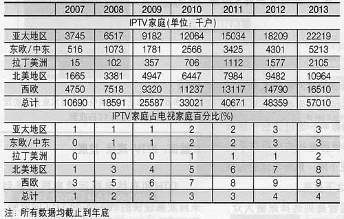 在全球,已經(jīng)有越來越多的國家和地區(qū)投身IPTV。IPTV以其獨一無二的特性和服務(wù)方式展現(xiàn)在全球市場上如今IPTV在全球的發(fā)展可以用“日新月異”來形容。