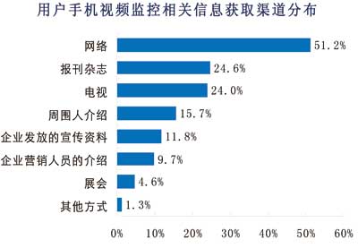 另一方面,運營商的宣傳不到位。從諾達咨詢調查數據來看,用戶目前獲得手機視頻監(jiān)控相關信息的主要渠道是互聯(lián)網,有51%的用戶是通過互聯(lián)網了解手機視頻監(jiān)控的,而從傳統(tǒng)的電視媒體和報刊雜志獲得相關信息的用戶僅僅約各占24%,通過相關手機視頻監(jiān)控企業(yè)發(fā)放宣傳資料和介紹獲取相關信息的用戶各占12%和10%。由此可見,手機視頻監(jiān)控的宣傳尚不到位,導致消費者不能通過多方渠道獲取相關信息。