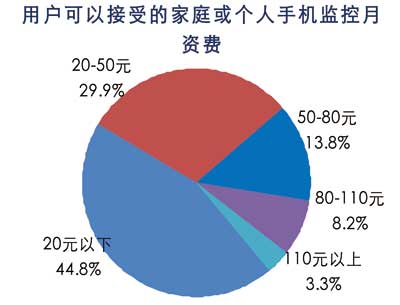 目前的資費標準與用戶20元以下的資費期望值存在很大差距,如果個人或家庭用戶的資費可以降低到20-50元,手機視頻監(jiān)控服務將可以被大多數用戶所接受。