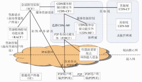 (2)支持傳統(tǒng)終端和P2P終端,應(yīng)考慮終端層面P2P技術(shù)的引入,充分發(fā)揮P2P技術(shù)的優(yōu)點(diǎn),利用P2P終端的資源和能力,簡化網(wǎng)絡(luò)的負(fù)荷。但同時,在終端層面引入P2P帶來了控制復(fù)雜性,內(nèi)容分發(fā)控制方面,面向傳統(tǒng)終端通常采用CDN技術(shù)來實現(xiàn)媒體內(nèi)容的分發(fā),為了支持P2P終端,需要考慮P2P控制和CDN的結(jié)合;資源控制方面,由于P2P連接具有很強(qiáng)的動態(tài)性、并發(fā)性且持續(xù)時間可能短暫等特點(diǎn),會話控制和承載控制相結(jié)合的機(jī)制很難和P2P這種連接特性相適應(yīng),需要針對P2P連接特性相適應(yīng)的控制機(jī)制,并且不同的終端類型應(yīng)選用不同的控制機(jī)制。