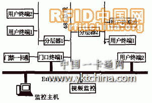系統(tǒng)采用了兩套獨(dú)立的網(wǎng)絡(luò)系統(tǒng),第一套是基于485總線半雙工網(wǎng)絡(luò)系統(tǒng),第二套是基于以太網(wǎng)的局域網(wǎng)。基于485總線半雙工網(wǎng)絡(luò)系統(tǒng)用以連接門口終端、分層器和用戶終端,這主要是從成本上考慮。由于這三部分交換的信息比較少,數(shù)據(jù)交換的速度要求也不是很高而且實(shí)現(xiàn)比較簡(jiǎn)單,故采用了這種網(wǎng)絡(luò)系統(tǒng)。