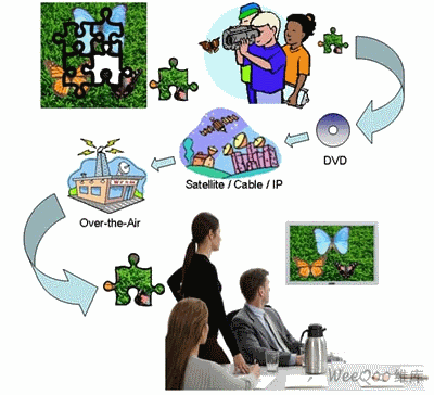 圖1. 電視信號從模擬信號轉(zhuǎn)換成數(shù)字信號,最后又恢復(fù)為模擬信號
