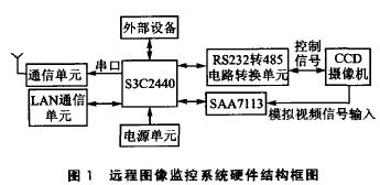 在嵌入式領(lǐng)域,ARM9系列微處理器在高性能和低功耗方面提供了最佳的性能,因此選用ARM9嵌入式處理器S3C2440設(shè)計實現(xiàn)了一個遠程圖像光線監(jiān)控系統(tǒng)通過這個系統(tǒng),可以遠在千里之外控制一個攝像機進行圖像采集并回傳。如果這個攝像機有一個485接口的云臺,還可以通過互聯(lián)網(wǎng)遠程控制攝像機的取景角度、鏡頭拉伸、聚焦等功能.