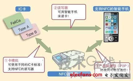 NFC(Near Field Communication)是一種采用13.56MHz頻帶的近距離無線通信技術(shù)。雖然通信距離僅為10cm左右,不過和非接觸式IC卡技術(shù)一樣,“只需碰一下”,便可在不同的電子產(chǎn)品間交換數(shù)據(jù)。