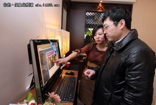 詩(shī)泥SPA總裁樓寧用惠普TouchSmart演示