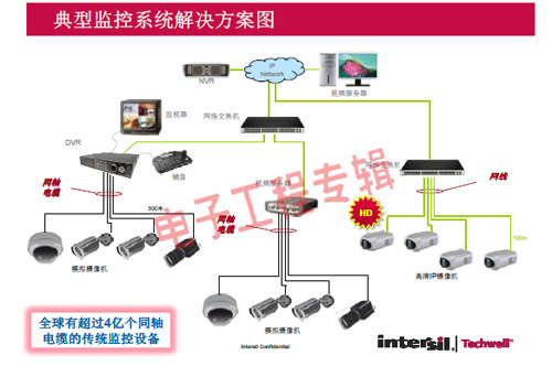 革命性的Intersil Techwell SLOCTM(Security Link over Coax)同軸電纜復(fù)合視頻傳輸解決方案是可通過(guò)一條同軸電纜同時(shí)傳輸模擬 CVBS 視頻和高清數(shù)字 IP 視頻信號(hào)的先進(jìn)調(diào)制解調(diào)器解決方案,其采用最新MODEM PHY技術(shù)的傳輸解決方案,可以基于同軸電纜同時(shí)傳輸高清IP碼流和標(biāo)清模擬實(shí)時(shí)視頻。