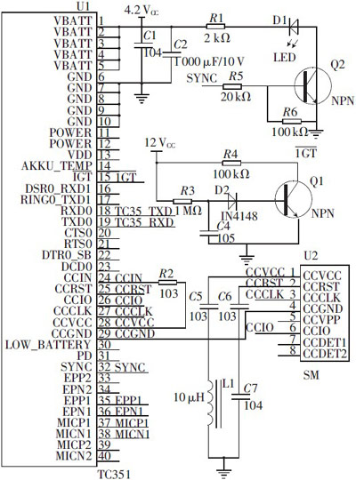 的數(shù)據(jù)接口通過AT命令可以雙向傳輸指令和數(shù)據(jù),可選波特率為300b/s~115kb/s,自動(dòng)波特率為1.2kb/s~115kb/s;支持TEXT和PDU格式的SMS,可通過AT命令或關(guān)斷信號(hào)實(shí)現(xiàn)重啟和故障修復(fù)。TC35I模塊主要由供電模塊、閃存、ZIF連接器、天線接口等6部分組成,作為TC35I的核心,基帶處理器主要處理GSM終端內(nèi)的語(yǔ)音和數(shù)據(jù)信息,并涵蓋了蜂窩射頻設(shè)備中的所有模擬和數(shù)字功能。