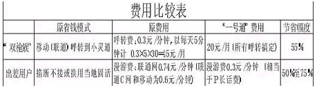 鐵通稱,“一號通”業(yè)務(wù)能讓用戶節(jié)省70% 以上的手機漫游費,“雙槍族”、“三槍族”們節(jié)省的呼叫轉(zhuǎn)移費則在一倍以上。