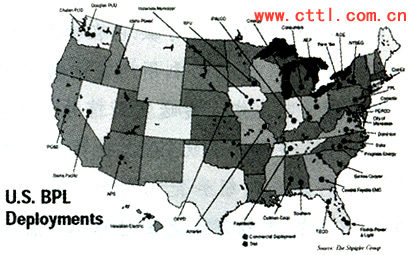 圖1 美國電力公司在全國各地開展的BPL試驗(yàn)