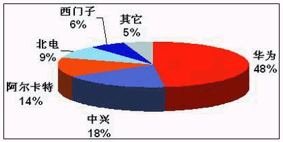 截止2004年底中國(guó)NGN設(shè)備市場(chǎng)份額
