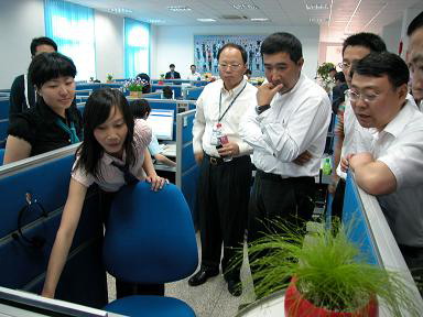 6月11日下午,省公司總經(jīng)理廖康、副總經(jīng)理鄭成渝一行前往呼叫中心視察,在認真聽取了實業(yè)公司郭志豪總經(jīng)理和相關(guān)負責人對呼叫中心的運營模式、業(yè)務流程及管理結(jié)構(gòu)等情況的詳細介紹后,廖總對呼叫中心下一步的發(fā)展提出了三個方面的建議和要求。一是要準確把握呼叫中心面向市場、面向社會,成為全省話務服務商的市場定位;二是要與主業(yè)公司多聯(lián)系、多溝通,建立與主業(yè)業(yè)務相銜接的業(yè)務流程,搭建支撐主業(yè)業(yè)務的平臺;三是要注重企業(yè)品牌的創(chuàng)建工作,下功夫?qū)艚兄行牡钠髽I(yè)品牌進行塑造。