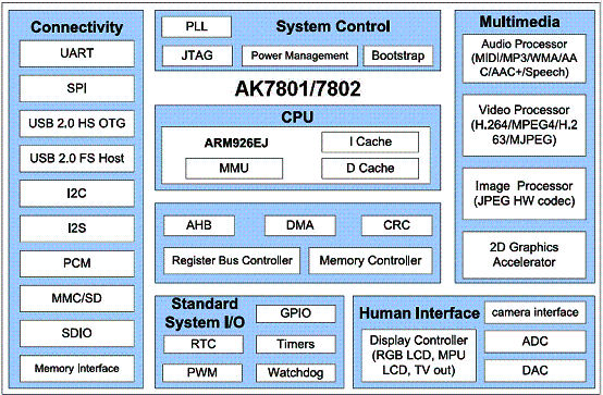 “安凱AK78系列多媒體應(yīng)用處理器采用ARM926EJ內(nèi)核,主頻高達(dá)300MHz,處理速度快,是安凱公司針對(duì)目前市場(chǎng)上日益增長(zhǎng)的多媒體應(yīng)用需求而推出的芯片產(chǎn)品!卑矂P公司產(chǎn)品副總監(jiān)楊剛能先生介紹說(shuō),“安凱公司的移動(dòng)電視方案就是基于這顆高性能的處理器設(shè)計(jì)開(kāi)發(fā)而成。該芯片支持H.264硬件加速,視頻顯示可支持到D1、刷新速率達(dá)到30fps。由于該芯片支持多路SPI/SDIO等各種豐富接口,可支持多模式移動(dòng)電視。安凱方案還可以支持海量存儲(chǔ),長(zhǎng)時(shí)間錄制電視內(nèi)容,并且用戶(hù)在收看一路節(jié)目的同時(shí)可錄制另外一路節(jié)目。這樣能夠滿(mǎn)足國(guó)內(nèi)外客戶(hù)的多種需求。此外,該方案集成了豐富的多媒體應(yīng)用功能,如數(shù)碼相框等。目前,已有安凱的合作伙伴基于該方案完成了終端產(chǎn)品的測(cè)試樣機(jī)。估計(jì)量產(chǎn)產(chǎn)品可在2008年5月投入市場(chǎng),供終端用戶(hù)選用!
