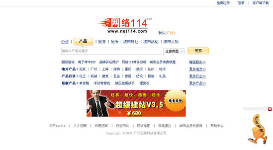 原網(wǎng)絡(luò)114 “轉(zhuǎn)讓”、“求購”、“招聘”、“應(yīng)急貼”、“商問”和“反查”等六大主打欄目不見了,取而代之的是“服務(wù)”、“場所”、“城市轉(zhuǎn)讓”、“城市活動”、“城市人物”等五欄目。據(jù)了解,第六欄目‘城市批發(fā)’由于數(shù)據(jù)整理問題,不參加公測,將被安排隨后直接上線,奧運(yùn)會帶來的巨大客流,對生活資訊黃頁的需求也隨之放大,巨大的需求也意味著生活資訊類網(wǎng)站巨大的發(fā)展機(jī)遇。7月初,谷歌把還處于測試期的生活搜索入口提到了中國首頁,與視頻、圖片、地圖等并稱谷歌中國八大重點(diǎn)業(yè)務(wù)之一。近日,雅虎口碑網(wǎng)也高調(diào)上線。