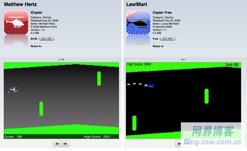 iCopter ,那么你也會喜歡免費(fèi)的 Copter 。” 甚至還有與之對應(yīng)的另一種情況,開發(fā)者抄襲一個免費(fèi)應(yīng)用,然后把它做成付費(fèi)版——