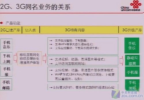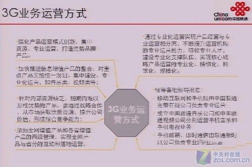 前不久,有論壇網(wǎng)友曝光了幾張聯(lián)通內(nèi)部3G培訓所用的PPT截圖,其中不僅提到了聯(lián)通3G業(yè)務的運營方式,2G/3G同名業(yè)務的關(guān)系,還再一次強調(diào)了聯(lián)通將重點推廣的3類九項主要3G業(yè)務。這和筆者前段時間為大家曝光的《官方Flash動畫:解析聯(lián)通3G九大特色業(yè)務》所提到的聯(lián)通9大特色3G業(yè)務保持一致。