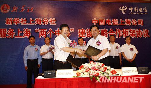 根據(jù)新華社上海分社與中國電信上海公司簽署的信息化戰(zhàn)略合作協(xié)議,雙方將共同致力于為上!皟蓚中心”建設(shè)開展合作,向上海的機構(gòu)用戶和個人用戶提供高端信息服務。