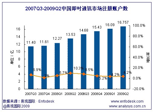 09年2季度中國即時通訊累計注冊賬戶數(shù)達16.76億