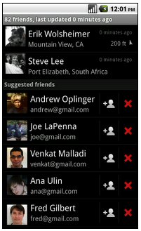 Google縱橫是一項(xiàng)可以分享自己位置同時(shí)尋找家人和朋友的應(yīng)用,新版Google Maps將會(huì)給出一個(gè)縱橫聯(lián)系人建議列表,你可以通過(guò)這項(xiàng)列表查看到Google聯(lián)系人中的好友,或許會(huì)查看到失散多年的朋友或親人。你可以點(diǎn)擊+號(hào)將其加入縱橫應(yīng)用,同時(shí)也可以點(diǎn)擊X號(hào)將其從建議列表中刪除。