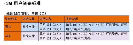圖:3G用戶資費(fèi)標(biāo)準(zhǔn)