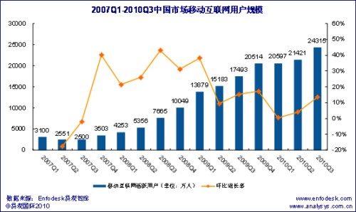 2010年第3季度中國(guó)移動(dòng)互聯(lián)網(wǎng)用戶(hù)規(guī)模達(dá)2.43億