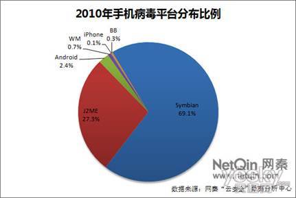 圖:2010年手機(jī)病毒平臺分布比例