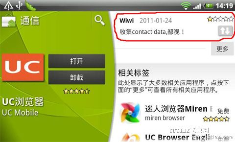 目前,很多手機(jī)社交應(yīng)用中加入了對(duì)用戶(hù)關(guān)系的抓取,這些應(yīng)用在用戶(hù)需要尋求社交關(guān)系時(shí),將讀取用戶(hù)通訊錄中的信息,并進(jìn)行自動(dòng)匹配。其中包括手機(jī)廠(chǎng)商HTC的HTCSENSE,UCWEB中的UC樂(lè)園,以及最近火熱的kik類(lèi)應(yīng)用,如KikMessenger,米聊、微信等。多數(shù)用戶(hù)表示對(duì)于此種抓取通訊錄的行為表示疑慮。